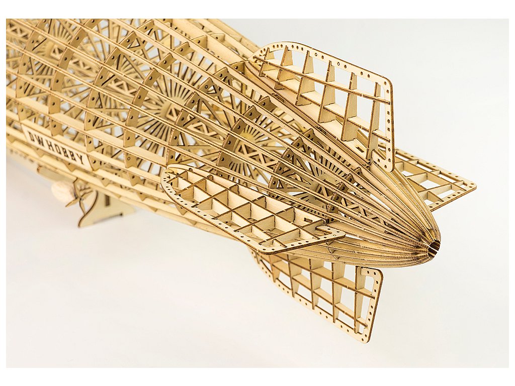 Konstrukce: Nestavíte "plný" trup, ale spíše fascinující vnitřní kostru (žebrory), která ukazuje, jak byla tato obří vzducholoď technicky řešena.