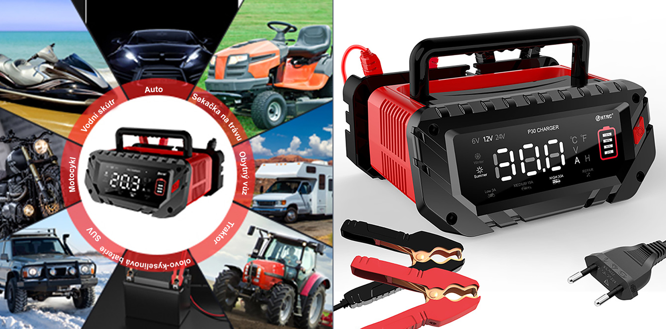 Nabíječka P30 Pro je určena pro auta, motocykly, SUV, obytné vozy, traktory, lodě, vodní skútry i zahradní techniku. Podporuje 6V / 12V / 24V baterie a díky vysokému nabíjecímu výkonu si poradí s běžnými i náročnějšími aplikacemi. Univerzální použití z ní činí praktické řešení pro domácí i profesionální využití.