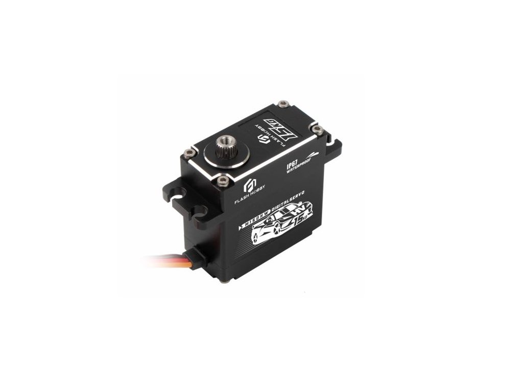 Silné digitální servo s DC motorem určené nejen do RC modelů aut, letadel a lodí. Servo je vodotěsné (IP67), pracuje v rozsahu 4,8-7.4V a disponuje dvěmi kuličkovými ložisky. Výstupní hřídel s tisícihranem s 25 zuby.