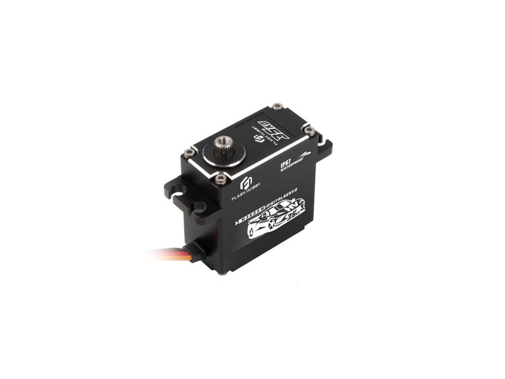 Silné digitální servo s DC motorem určené nejen do RC modelů aut, letadel a lodí. Servo je vodotěsné (IP67), pracuje v rozsahu 4,8-7.4V a disponuje dvěmi kuličkovými ložisky. Výstupní hřídel s tisícihranem s 25 zuby.