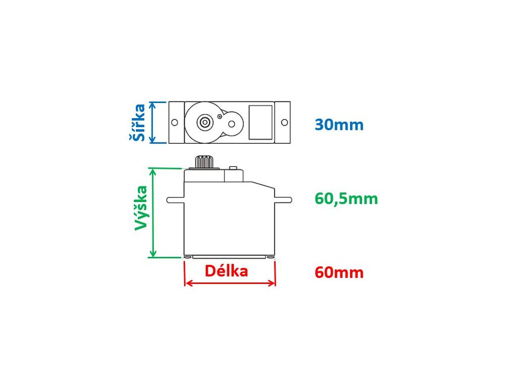 Výkonné digitální maxi servo s přesnými kovovými převody s tvrdopokovením. Vysoce odolné díky kovové střední části trupu.