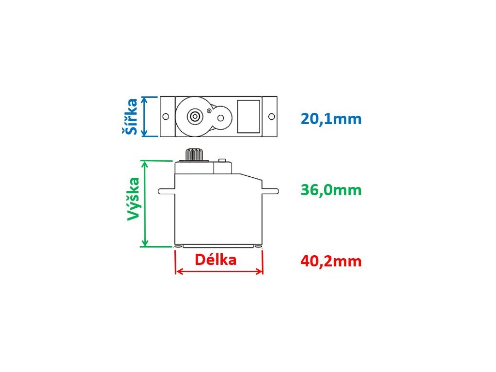 Rozměry: 40.2 x 20.1 x 36.0 mm V případě potřeby zašleme kompletní specifikaci. CNC- kovové servo páky 25T