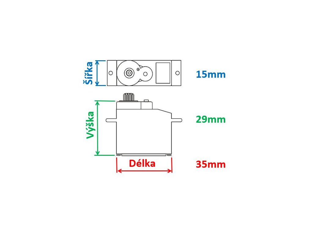 Výkonné digitální mikro servo do křidýlek s přesnými kovovými převody z tvrdokovu obsahující velmi kvalitní coreless motor a 2 kuličková ložiska.