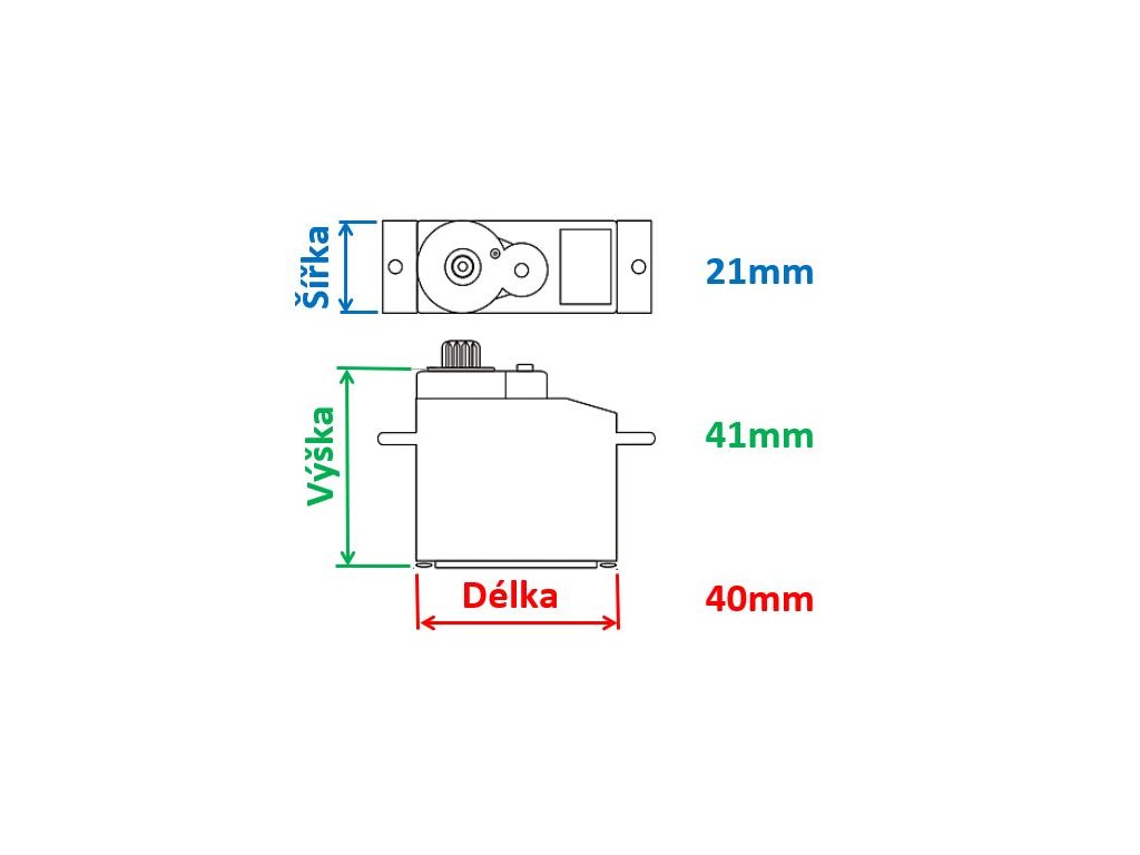 Přesné, rychlé, velmi silné servo s kovovým ozubením.