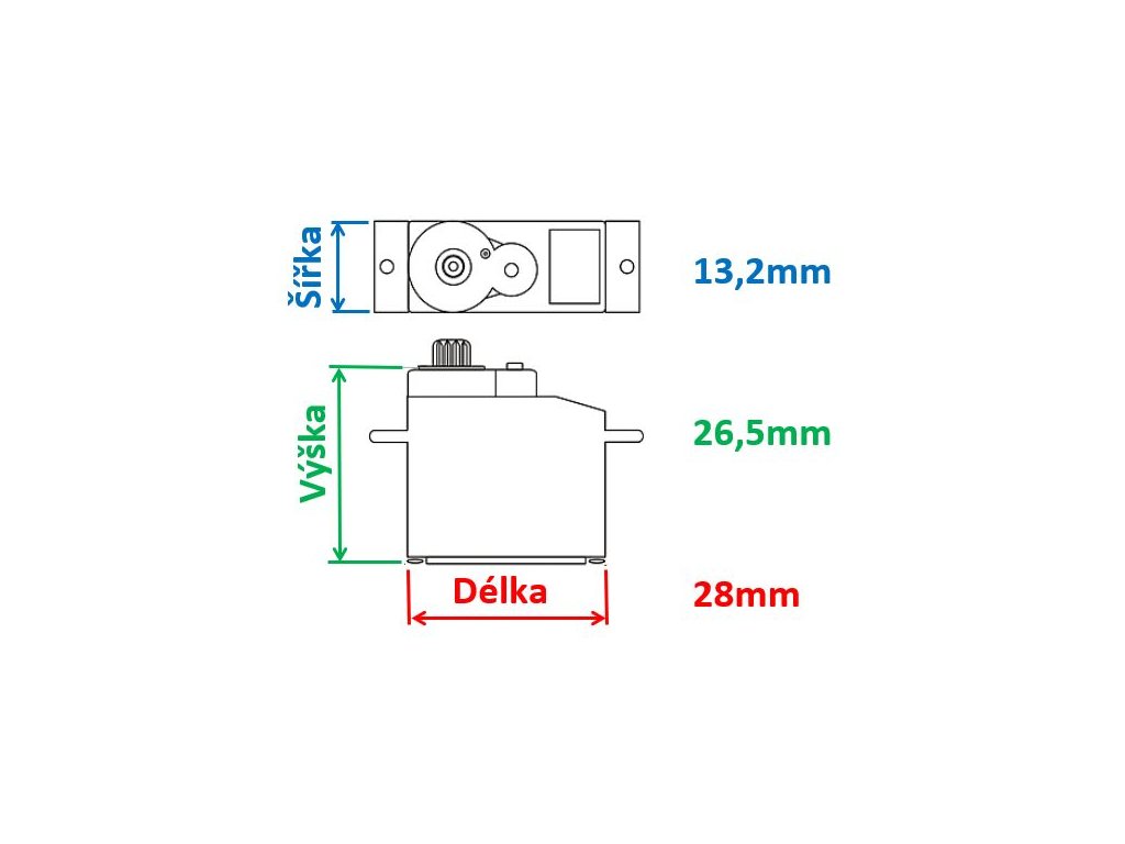 Mini servo s přesnými kovovými převody s hladkým chodem a dlouhou trvanlivostí obsahující kvalitní brushed motor, které vás příjemně překvapí i nízkou hmotností a minimálními rozměry.