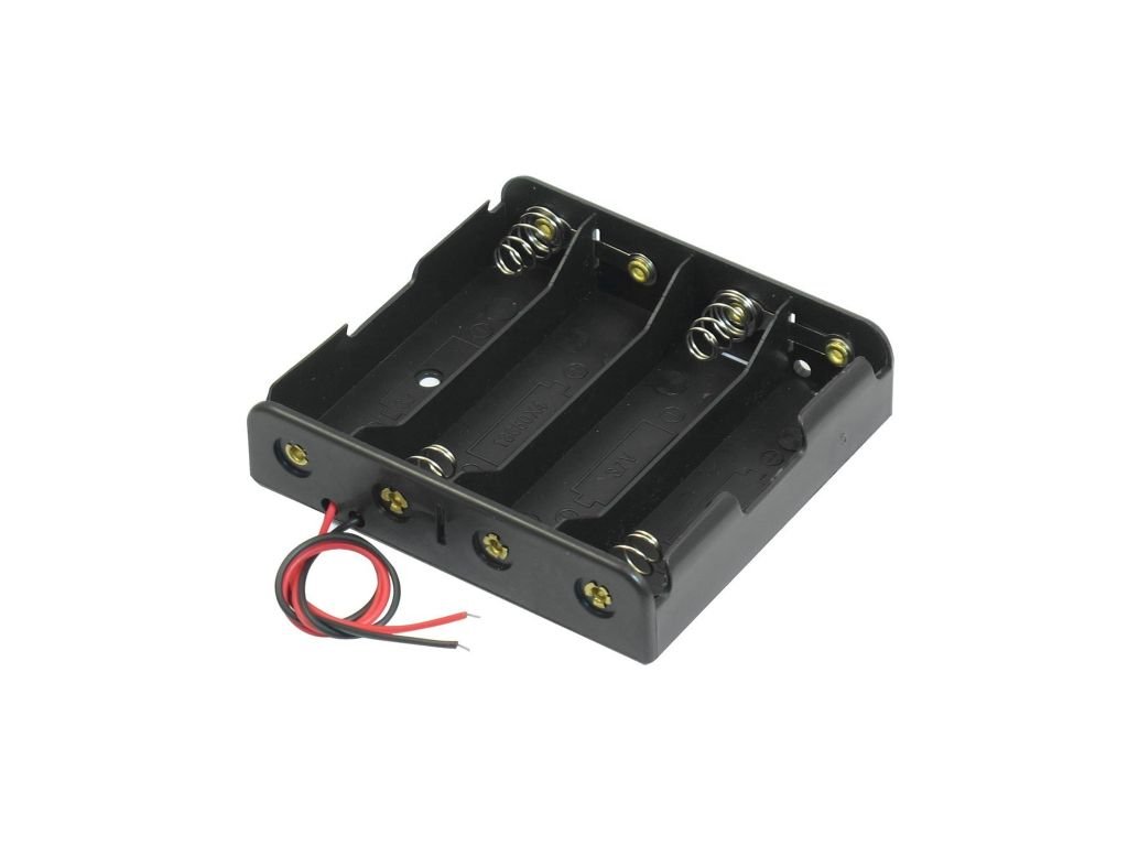 Držák na 4 kusy Li-ion baterie velikosti 18650, ukončení kablíky.