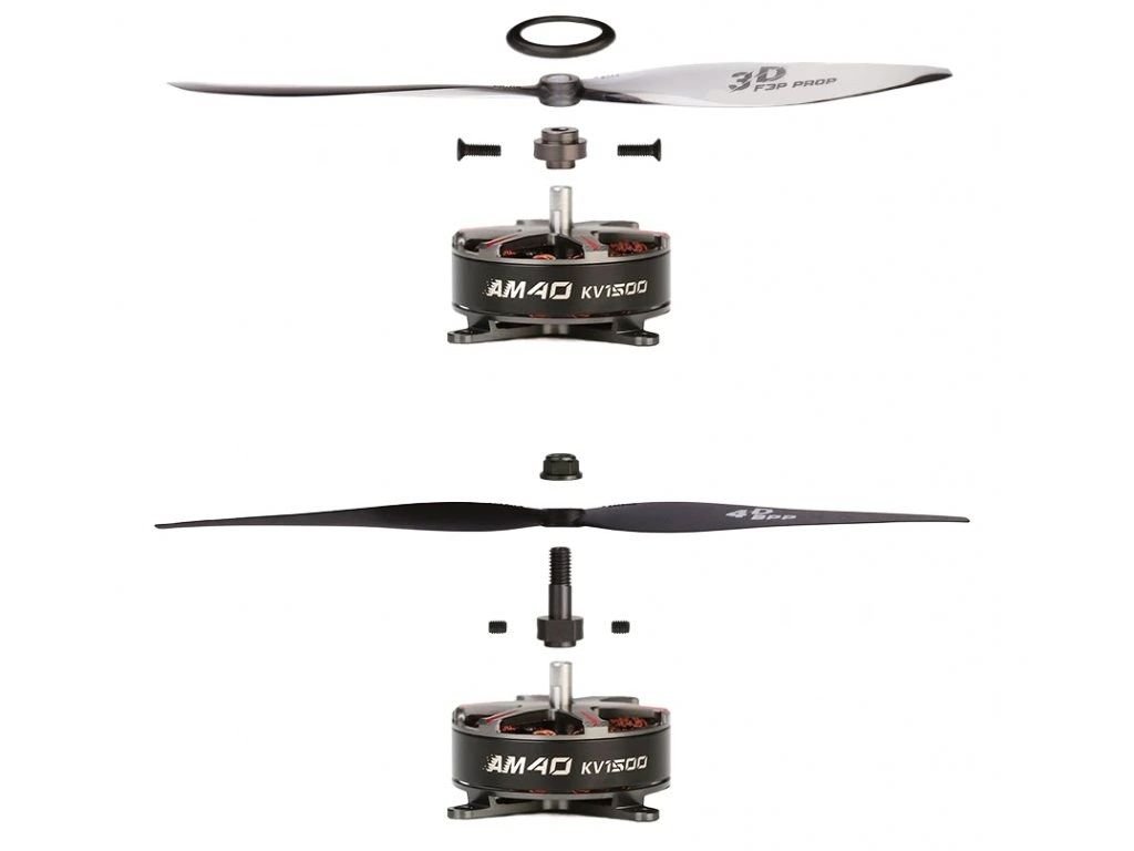 1x motor AM40-4D 1850kv, 1x ESC 16A přepínatelný z 3D na 4D, 2x 4D vrtule 8.5x4.2, unašeč pro 3D, 4D, příslušenství k montáži.