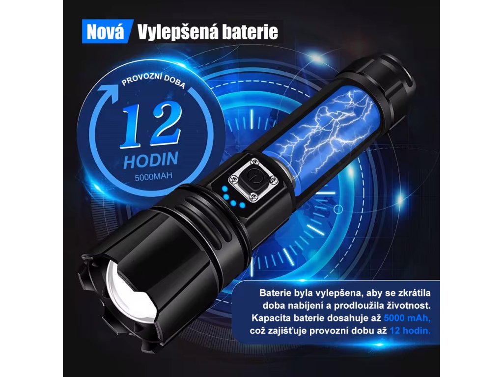 Hledáte-li výkonnou svítilnu s dlouhým dosahem a vysokou světelnou intenzitou, pak je tato nová laserová svítilna ideální volbou. LED čipem a možností zoomování můžete osvětlit až 1,5 km vzdálenost. Díky vodotěsné konstrukci a USB nabíjení je tato svítilna skvělým společníkem pro outdoorové aktivity.