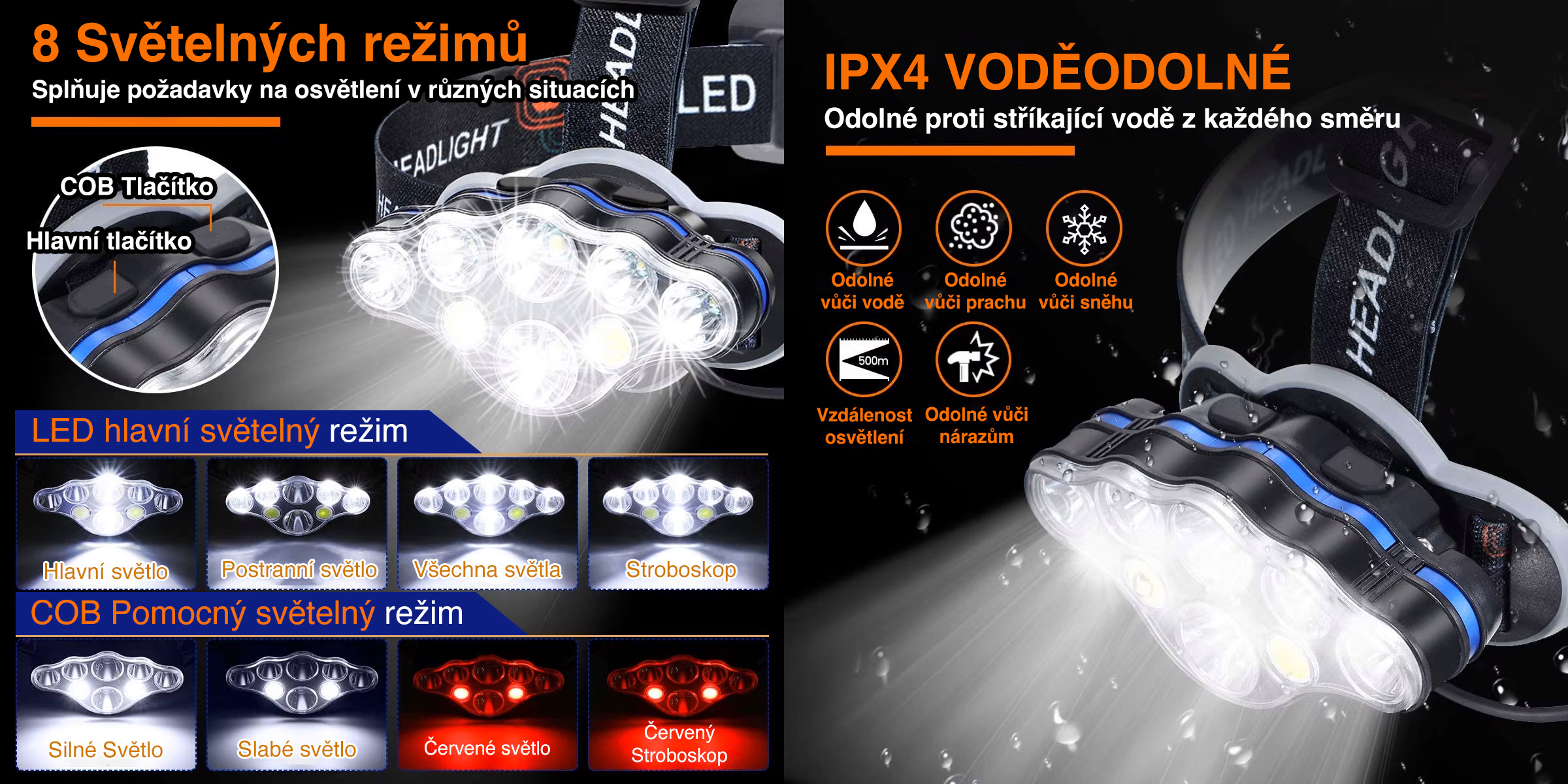 8 světelných režimů a odolnost IPX4