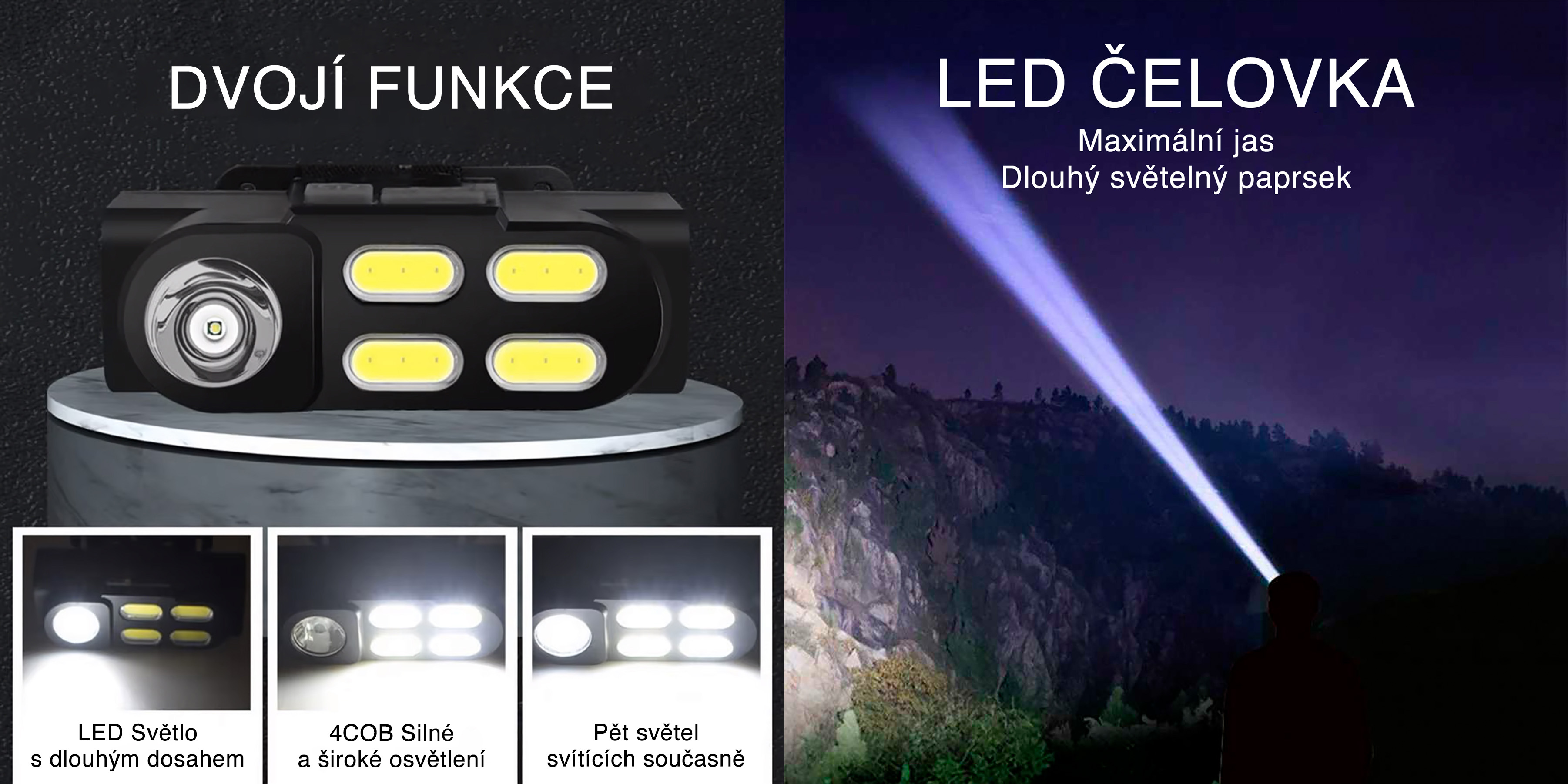 Čelovka kombinuje LED diodu s dlouhým dosahem a čtyři COB panely pro široké osvětlení prostoru. Umožňuje využívat bodové světlo, plošné světlo i jejich současné zapnutí, přičemž může svítit až pět světelných zdrojů najednou. Tato konstrukce zajišťuje silné a rovnoměrné osvětlení při různých aktivitách.