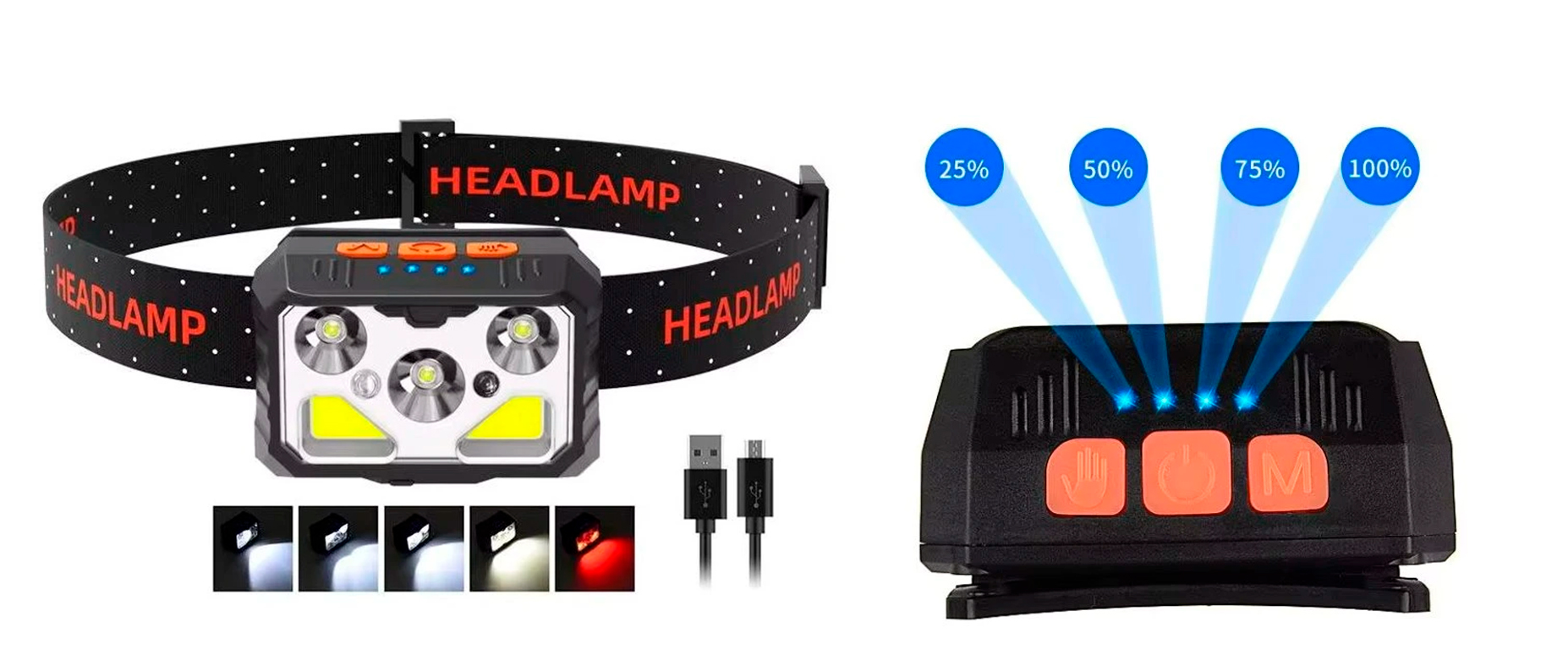 Čelovka je vybavena hlavní LED diodou a doplňkovými světelnými panely, které umožňují volbu mezi různými světelnými režimy včetně červeného světla. K dispozici jsou 3 režimy svícení, mezi kterými lze přepínat pomocí horních tlačítek. Integrované světelné indikátory zobrazují úroveň nabití ve čtyřech stupních – 25 %, 50 %, 75 % a 100 %. Díky podpoře stmívání lze regulovat intenzitu světla podle aktuální potřeby.