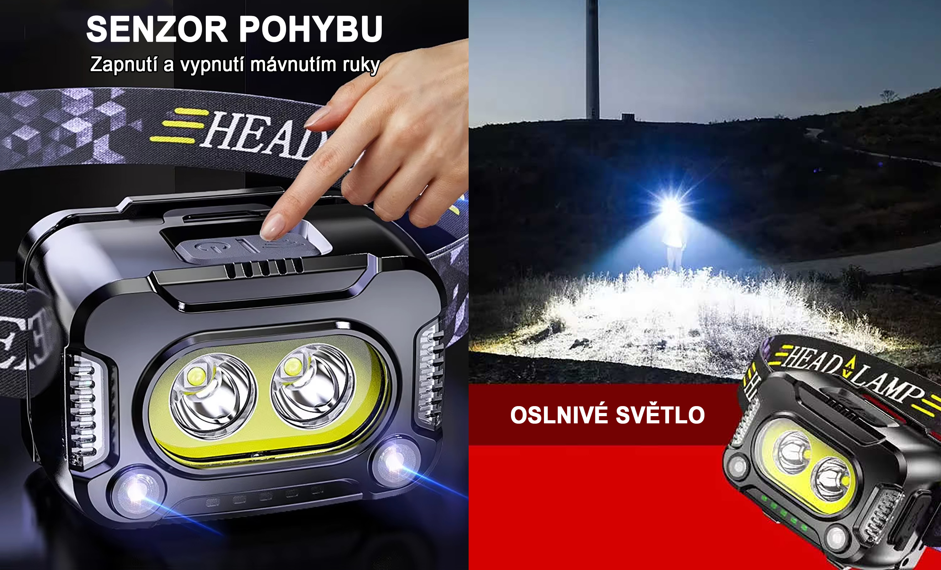 Model je vybaven pohybovým senzorem, který umožňuje zapnutí i vypnutí jednoduchým mávnutím ruky. Ovládání je tak rychlé a pohodlné i v rukavicích nebo při práci. Intenzivní světelný kužel poskytuje výrazné osvětlení prostoru před uživatelem. Silný výkon je vhodný pro pohyb ve tmě i náročnější terénní podmínky.