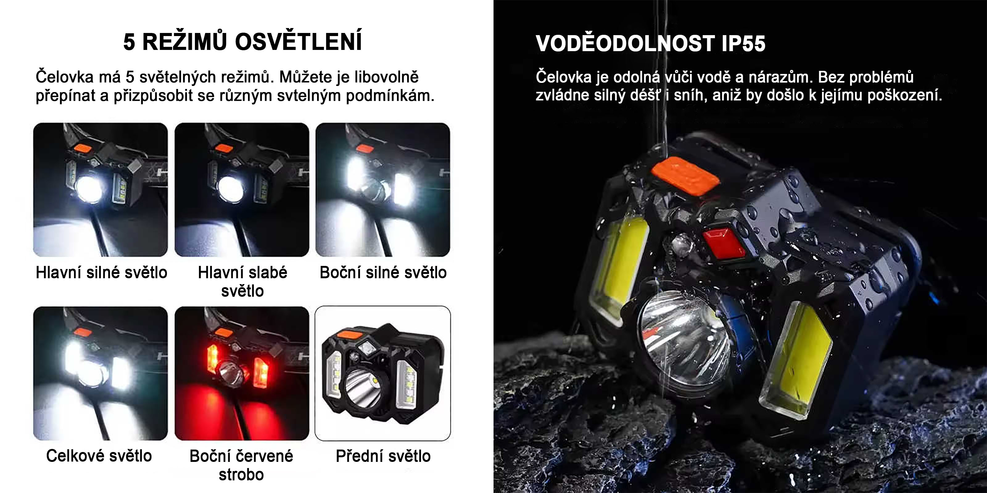 - 5 režimů světla – univerzální pro různé aktivity a podmínky
