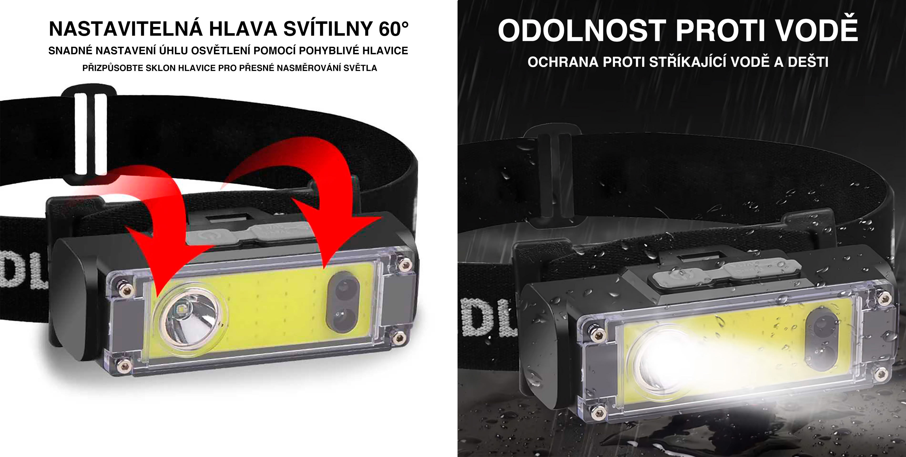 - umožňuje 90° nastavení úhlu světla