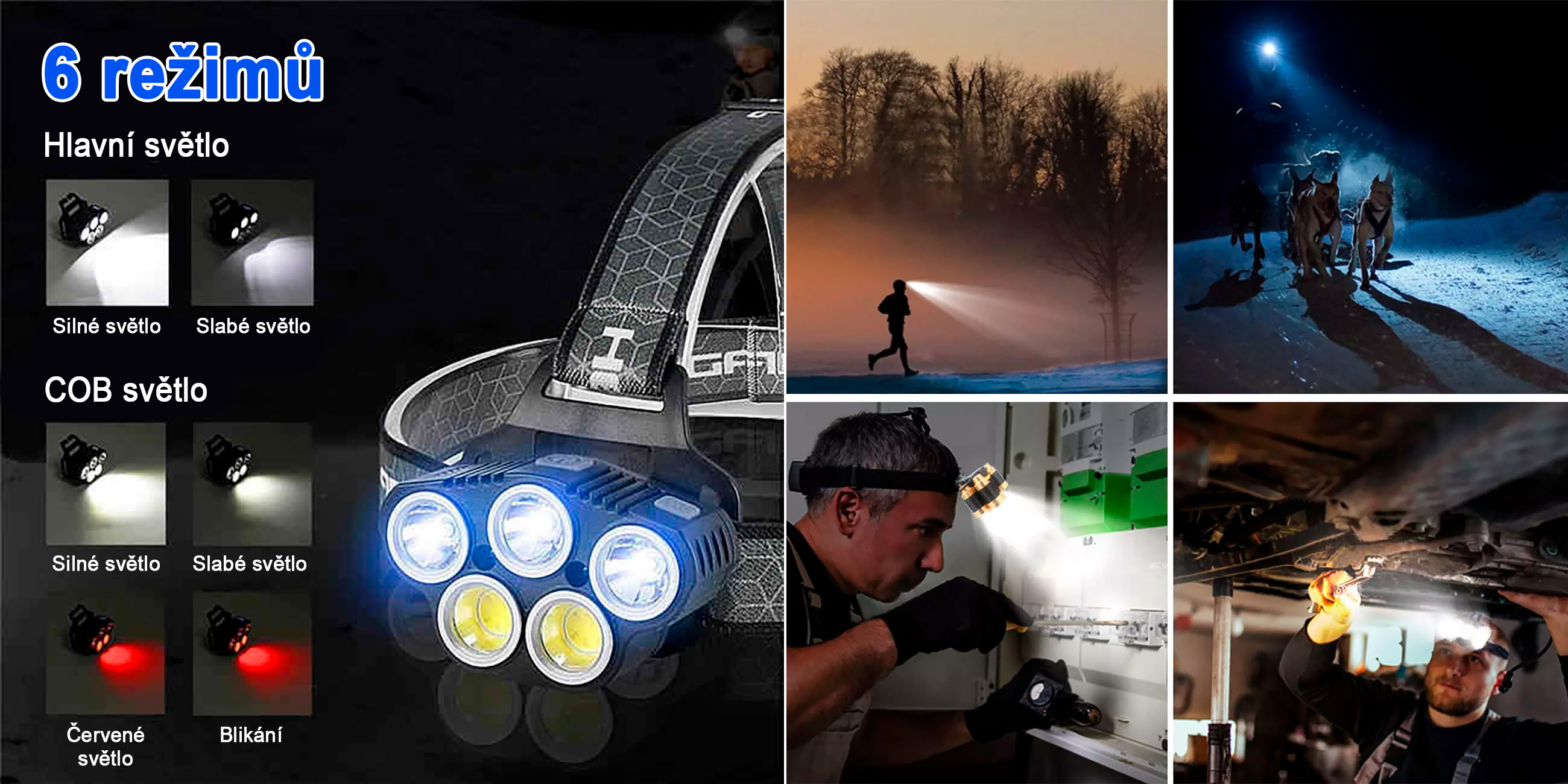 - 6 světelných režimů – přizpůsobení pro různé situace