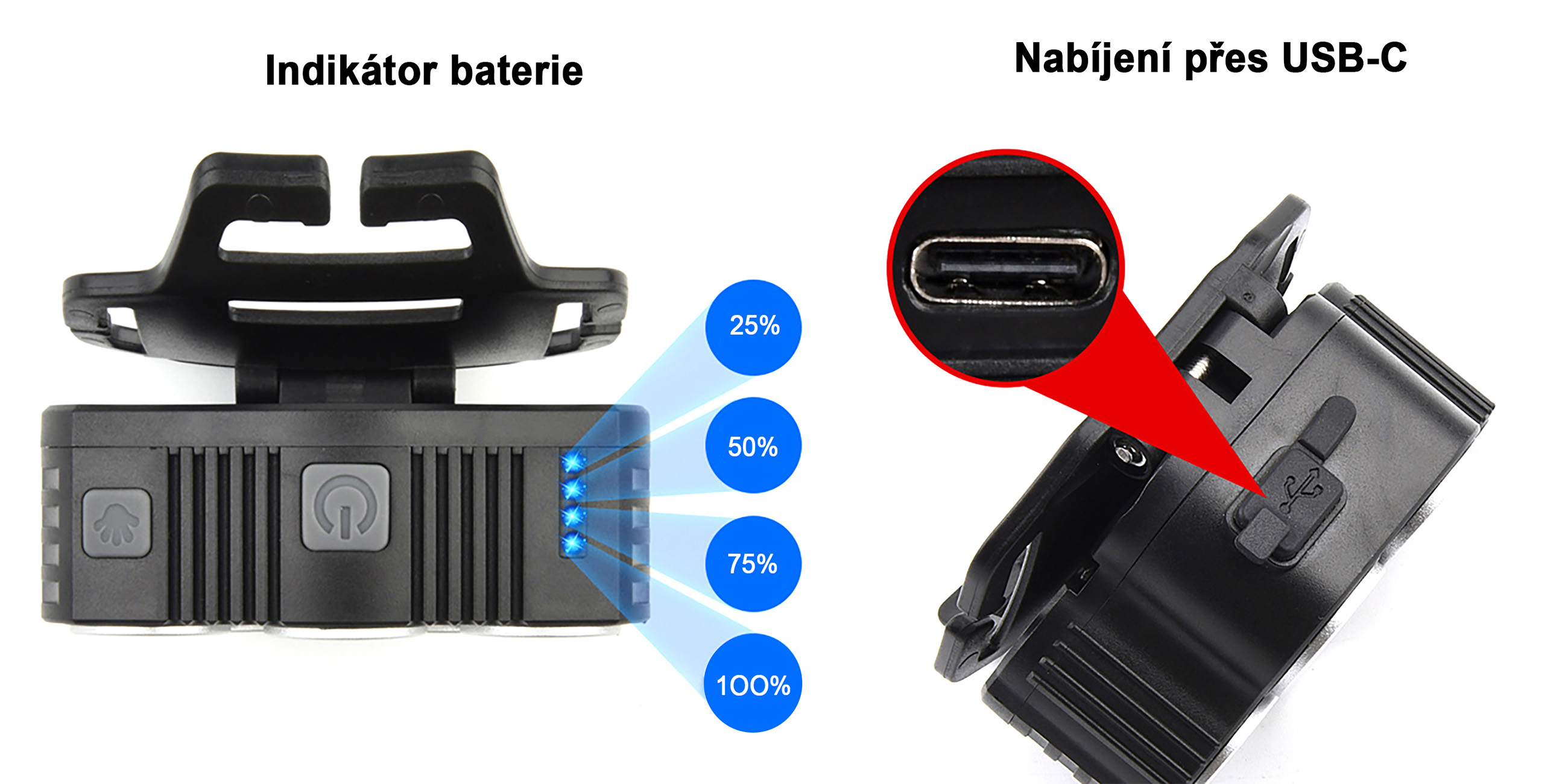 Indikátor baterie a USB-C nabíjení
