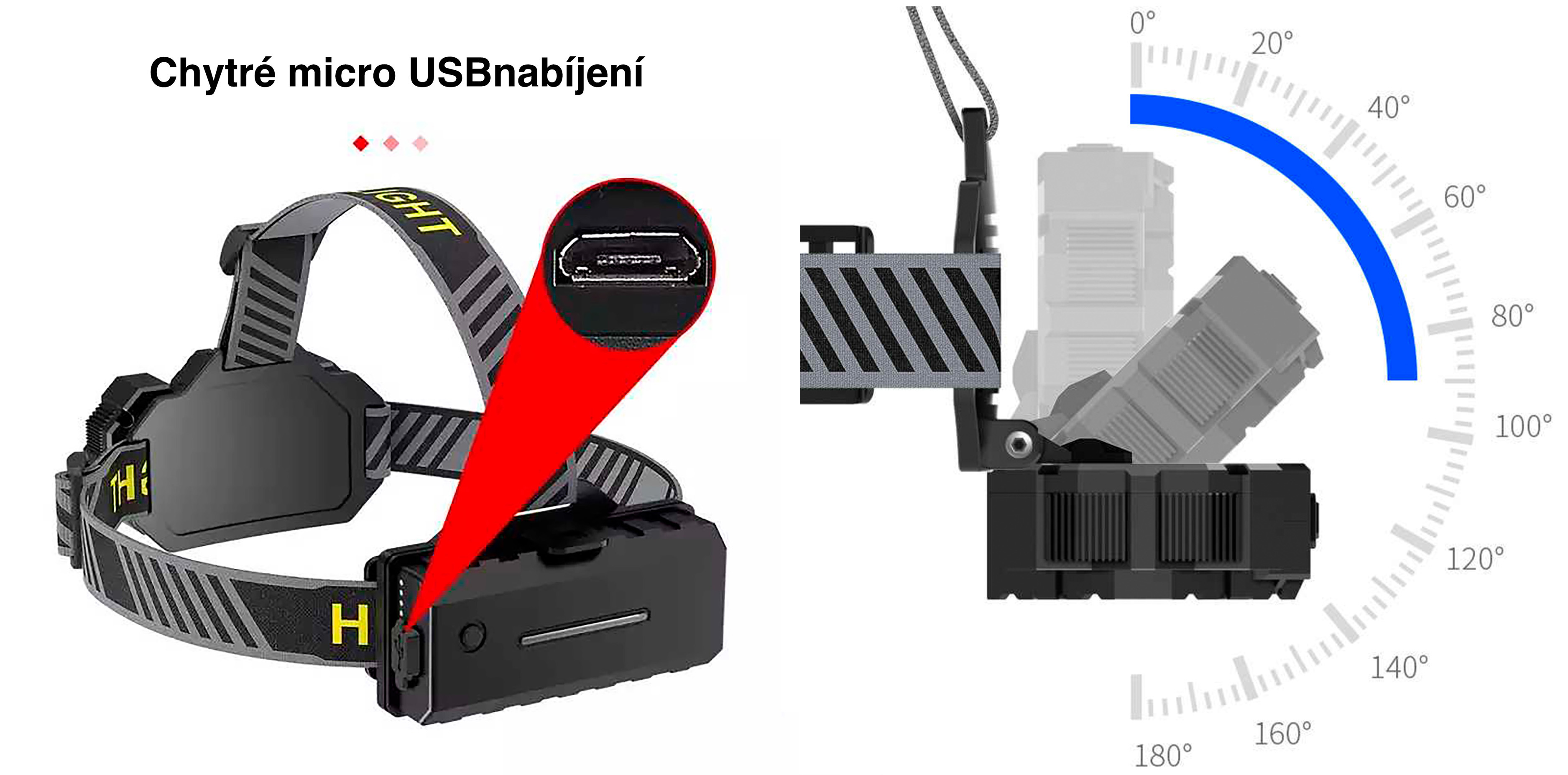Nastavitelný úhel svícení a nabíjení