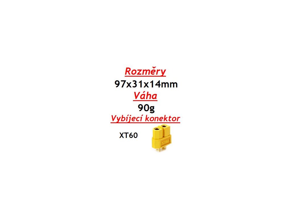 Baterie je opatřena vybíjecím konektorem XT60 a servisnim konenektorem JST-XH. Servisní konektor je opatřen chráničem servisního konektoru, k lepší manipulaci a ochraně při nabíjení (lze odepnout).