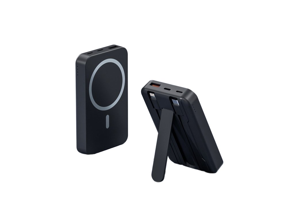 Kompaktní magnetická powerbanka s kapacitou 10 000 mAh nabízí kombinaci rychlého bezdrátového i kabelového nabíjení s výkonem až 15–22,5 W (dle typu výstupu). Díky integrovanému stojánku se používá maximálně pohodlně a silné magnetické uchycení udrží powerbanku pevně na telefonu, takže můžete nabíjet kdykoliv a kdekoliv bez nutnosti držet kabel. Více výstupů a integrované skládací kabely umožňují nabíjet hned několik zařízení současně.