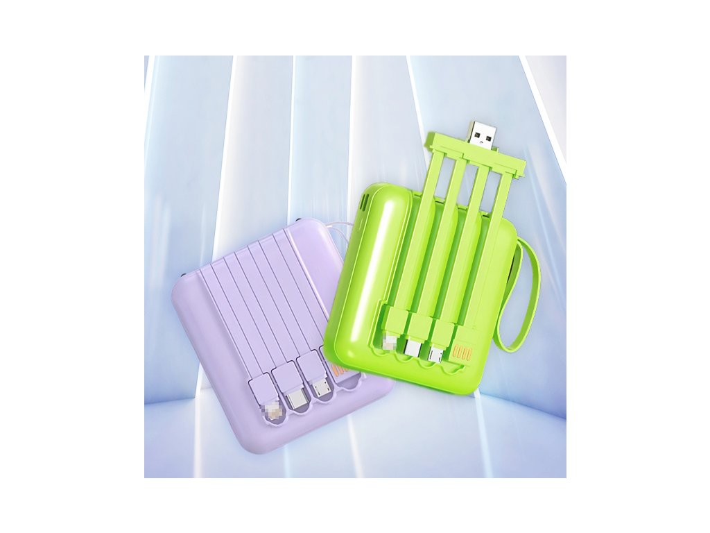 Praktická kapesní powerbanka se 4 kabely a rychlým nabíjením