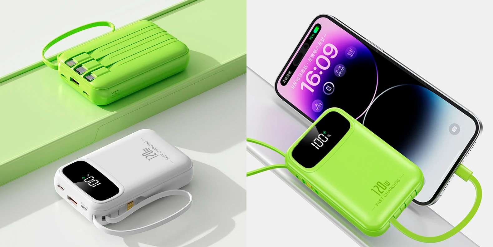 Podpora rychlého nabíjení až 120 W a PD 20 W umožňuje efektivní doplnění energie kompatibilních zařízení v krátkém čase. Powerbanka je vhodná pro moderní smartphony, tablety i další elektroniku a poskytuje stabilní výkon i při současném nabíjení více zařízení.