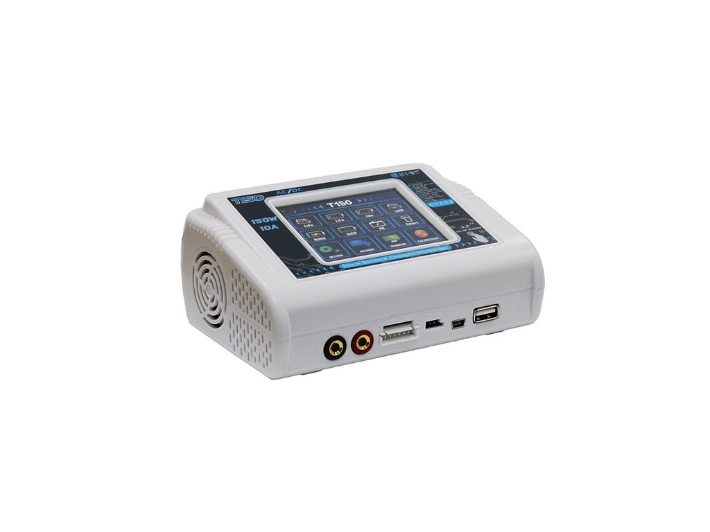T150 nabíječ je krásný, nový design multifunkční nabíječky s vysokou výkonností. Super cena, vysoká kvalita. Displej - 3,2 palců - barevný, vestavěný ventilátor, nápájení - DC 11-18V nebo AC 100-240V .Max nabíjecí výkon 150W, Max nabíjecí proud 10A. Navrženo pro nabíjení baterií LiPo LiFe Lilon LiHV NiCd NiMh Pb (autobaterie).