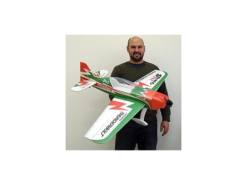 Polomaketa akrobatického letadla. Model je vyroben moderní technologií z „nezničitelného“ materiálu EPP. Uhlíkové výztuhy v trupu a křídlech dělají Sbach extra pevný a odolný během mnoha letů!