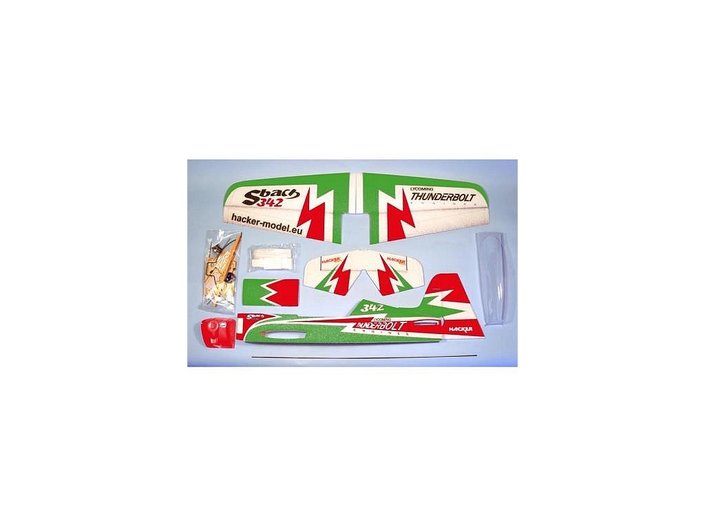 Obsahuje: Trup, křídlo, výškovku a směrovku s povrchovou úpravou, podvozek, kola, uhlíkové výztuhy, táhla a veškeré drobné příslušenství.