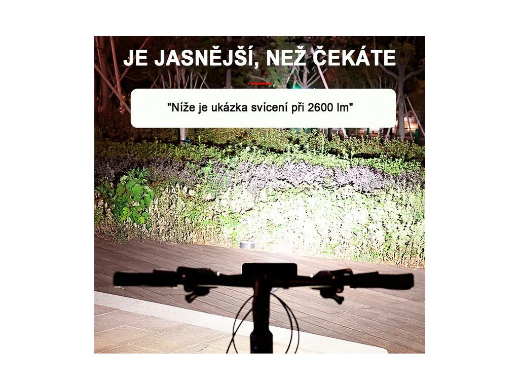 Extrémně výkonné cyklistické světlo 2600 lm s typ-C nabíjením a širokým světelným kuželem
