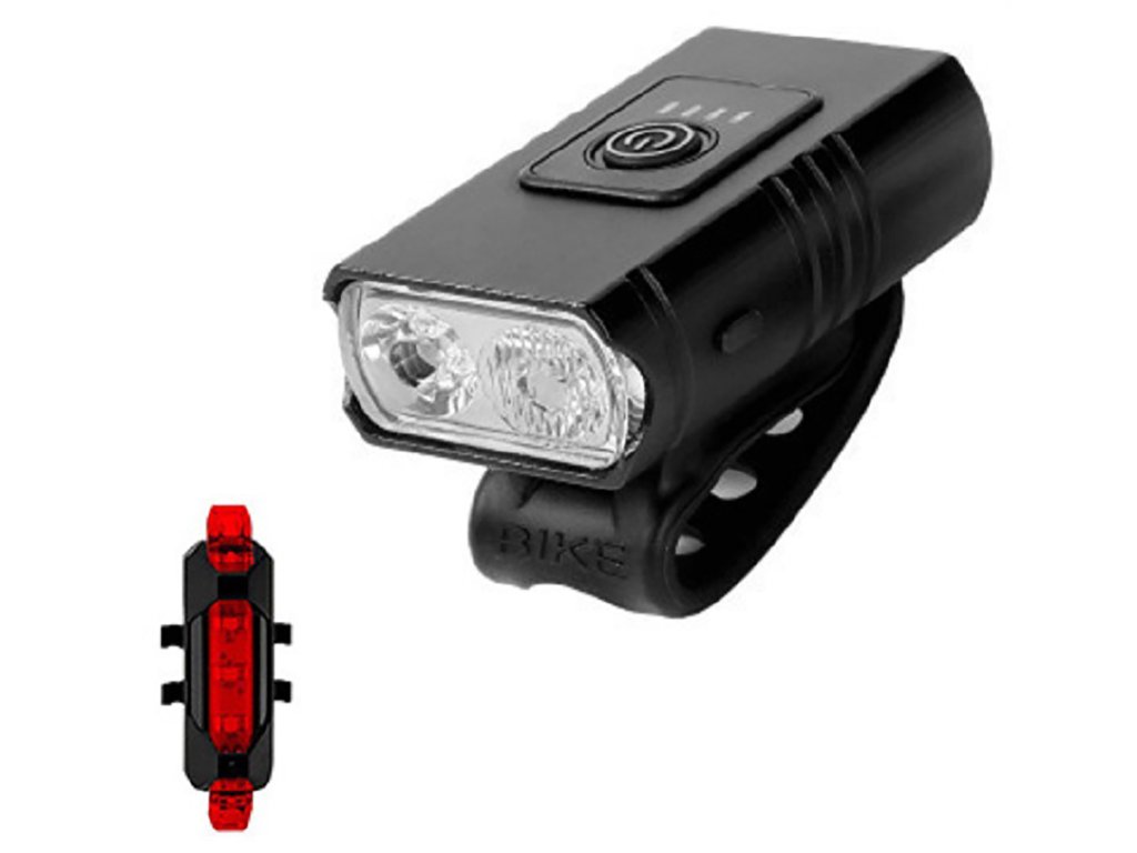 Tato sada obsahuje výkonné přední světlo se dvěma T6 LED diodami a zadní výstražné světlo, které zaručují maximální viditelnost a bezpečnost při noční jízdě. Konstrukce z hliníkové slitiny a ABS plastu spojuje lehkost s odolností vůči nárazům a vlhkosti. Voděodolnost IPX5 zabezpečuje neomezený provoz za deště či mlhy.