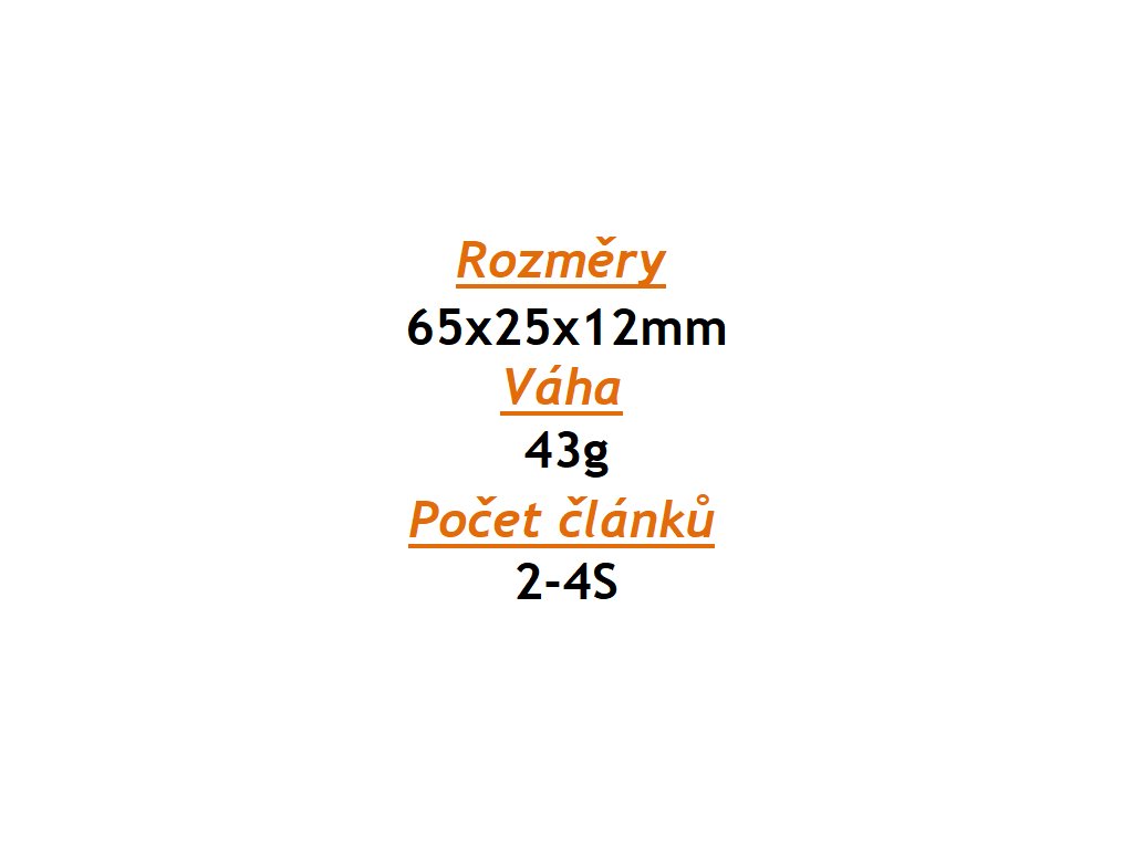 Počet článků (S): | 2S (7.4V), 3S (11.1V), 4S (14.8V) |