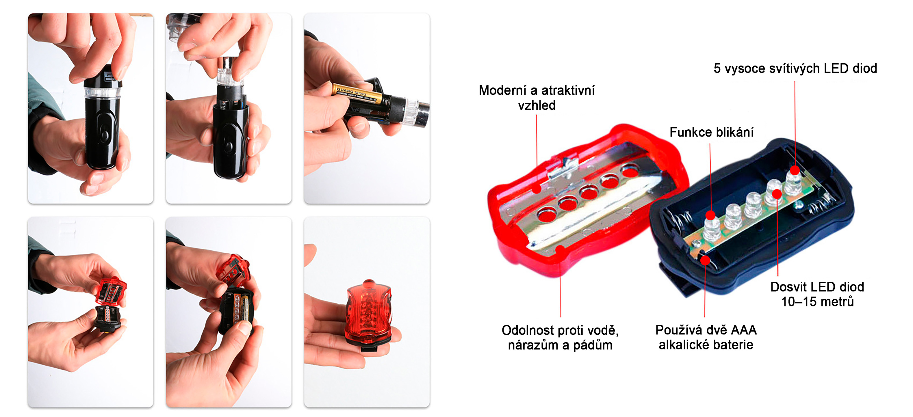 - 5 LED diod v každém světle pro spolehlivou viditelnost