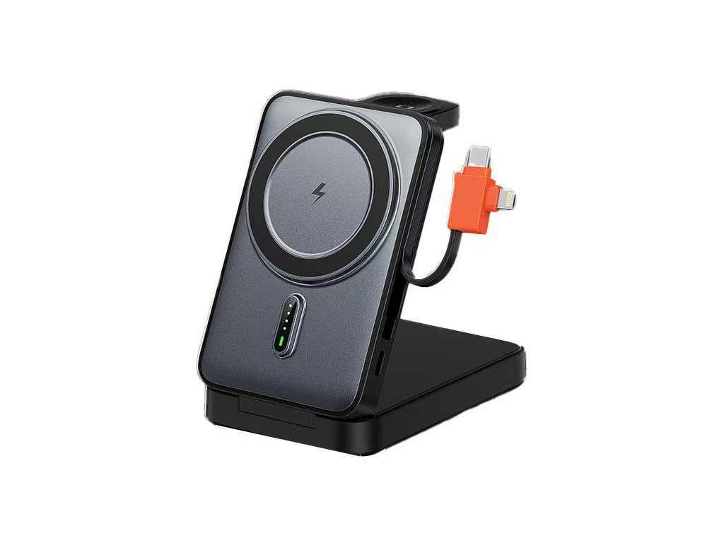 Zařízení kombinuje funkci powerbanky, bezdrátové nabíjecí stanice a klasické USB-C rychlonabíječky. Nabíjí iPhone, Apple Watch a AirPods současně a poskytuje výkon až 20 W pro rychlé doplňování energie. Skládací konstrukce umožňuje jednoduché složení do kompaktního tvaru, takže se bez problémů vejde do kapsy či tašky.