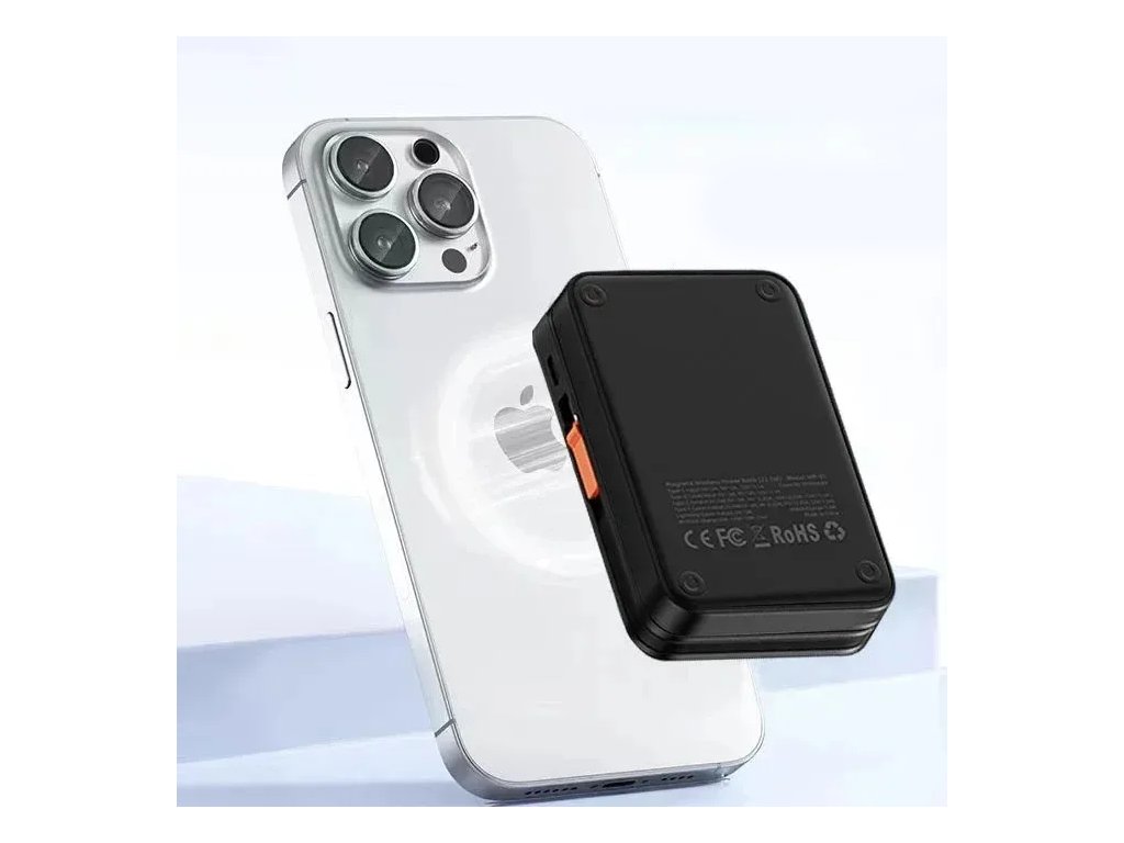 Powerbanka je vybavena kvalitní Li-Pol baterií, LED displejem pro přesné zobrazení stavu nabití a inteligentní ochranou proti přepětí, přehřátí a přebíjení. Hallův magnetický spínač automaticky aktivuje nabíjení při vyklopení stojánku, čímž šetří energii a prodlužuje životnost baterie.