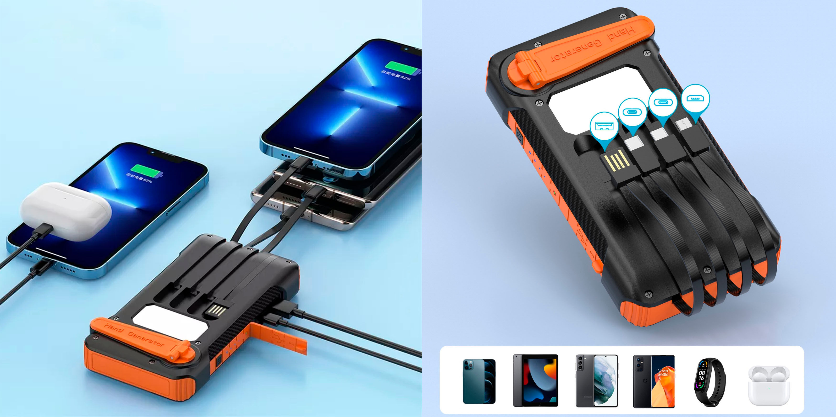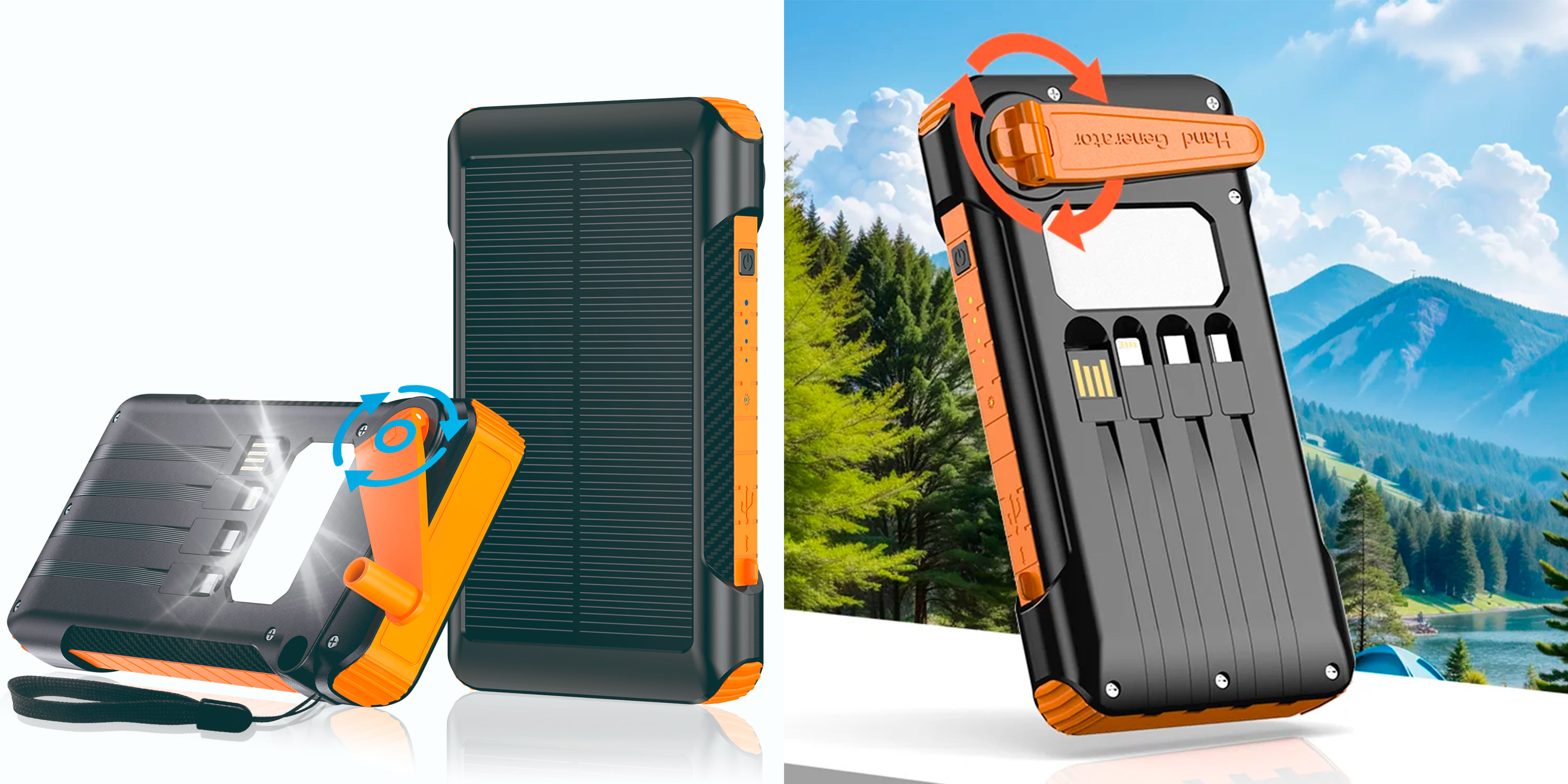 Kromě solárního dobíjení má zařízení také ruční kličku – díky ní si můžeš vyrobit energii kdykoliv, i v naprosté nouzi. Stačí pár otoček a telefon získá dostatek energie pro důležité hovory nebo navigaci. Ideální pro turistiku, kempování či krizové situace.