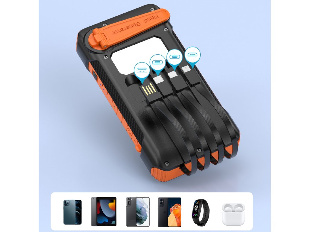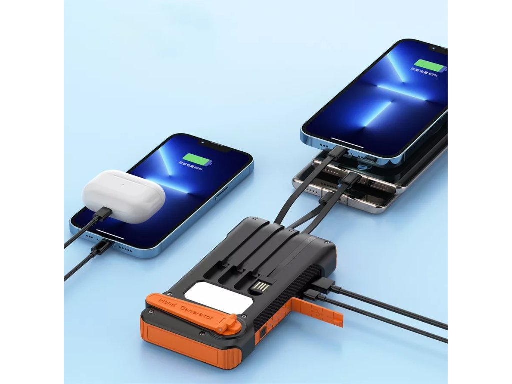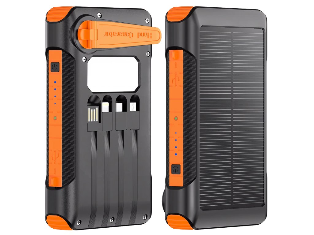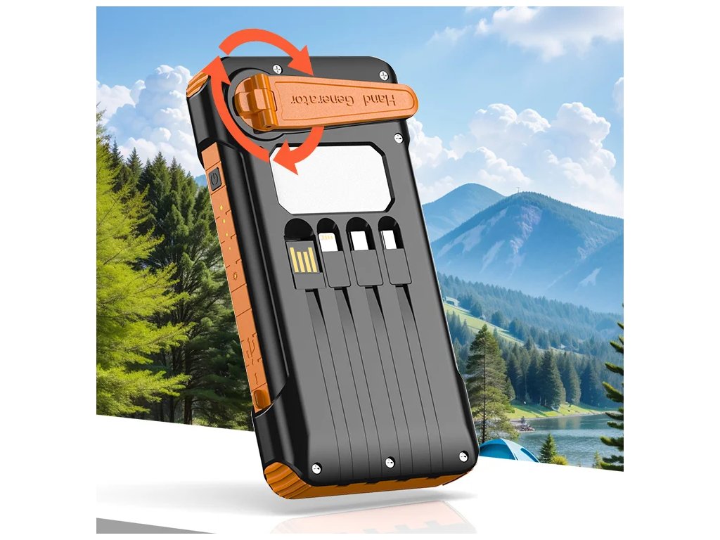 Kromě solárního dobíjení má zařízení také ruční kličku – díky ní si můžeš vyrobit energii kdykoliv, i v naprosté nouzi. Stačí pár otoček a telefon získá dostatek energie pro důležité hovory nebo navigaci. Ideální pro turistiku, kempování či krizové situace.