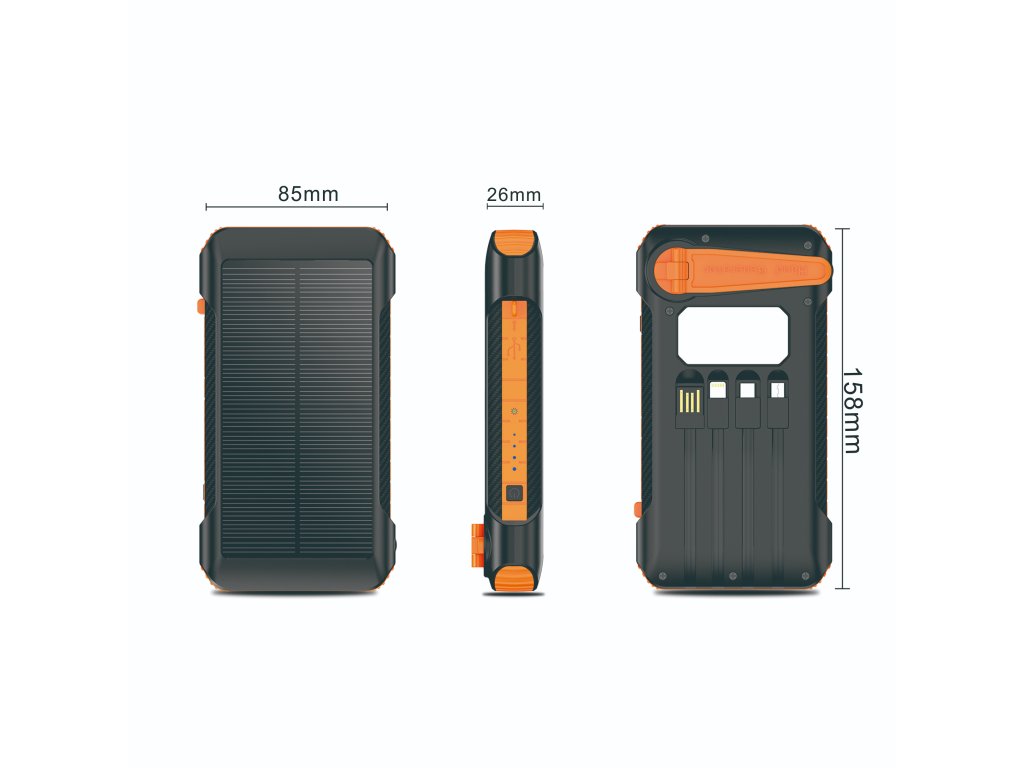Nechybí výkonná LED svítilna s SOS režimem ani ochranné prvky proti zkratu, přebití či hlubokému vybití. Solární panel umožňuje průběžné dobíjení energií ze slunce, což oceníš zejména v přírodě a nouzových situacích. Díky více vstupům, široké kompatibilitě a robustnímu provedení je powerbanka spolehlivým doplňkem pro každodenní použití i delší outdoorové výpravy.