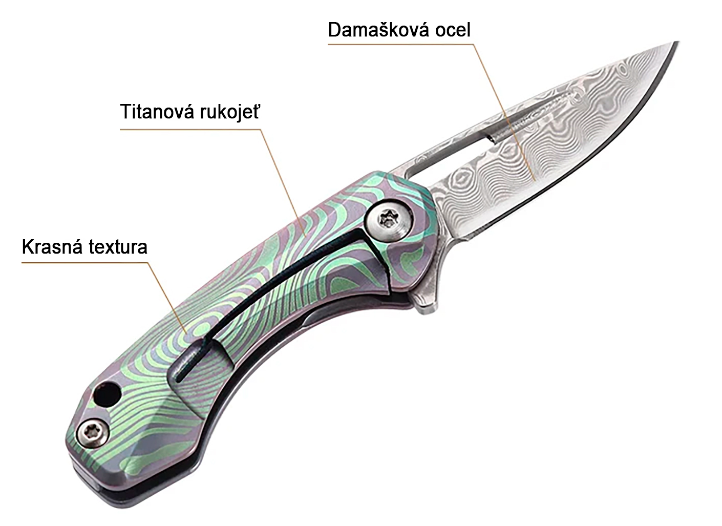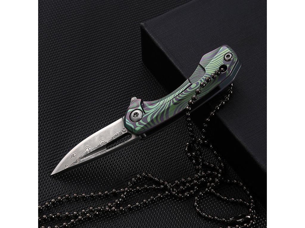 Malý damaškový nůž L-053 – elegantní nůž z damaškové oceli s titanovou rukojetí