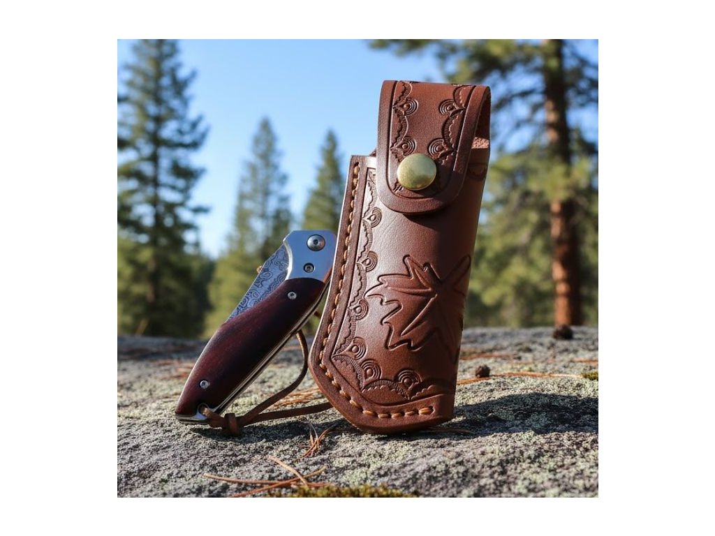 Zavírací nůž MZ-460 - hnědá + zdarma kožené pouzdro